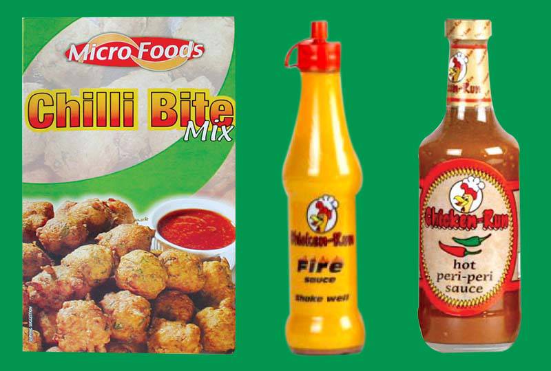 persuaded the company to embark on future products, hence the Chick ‘n lik coatings and Chillibite range being launched. Microfoods decided to further increase its basket and therefore produced a great tasting peri peri sauce branded “Chicken Run”, a pickle range and a curry powder range branded “Radia “.